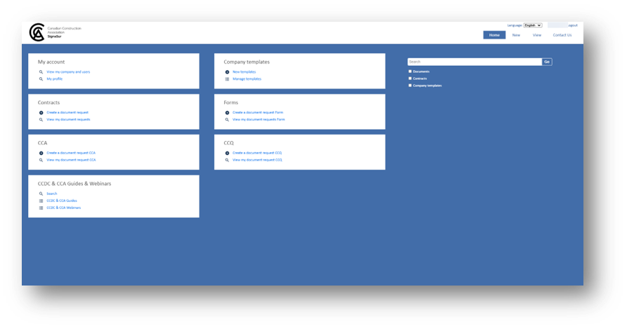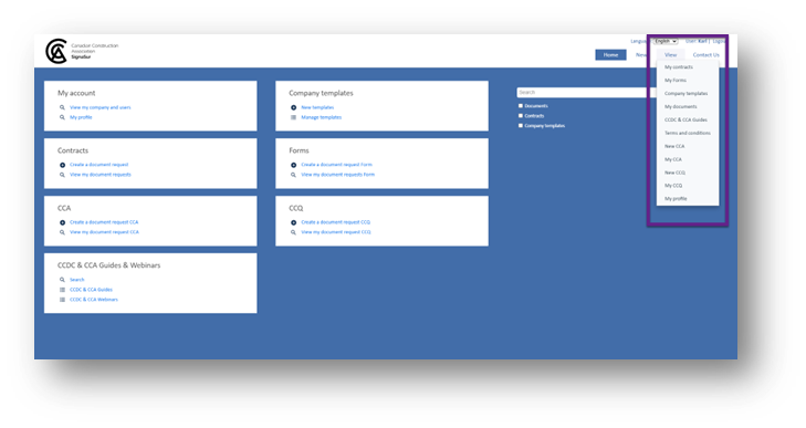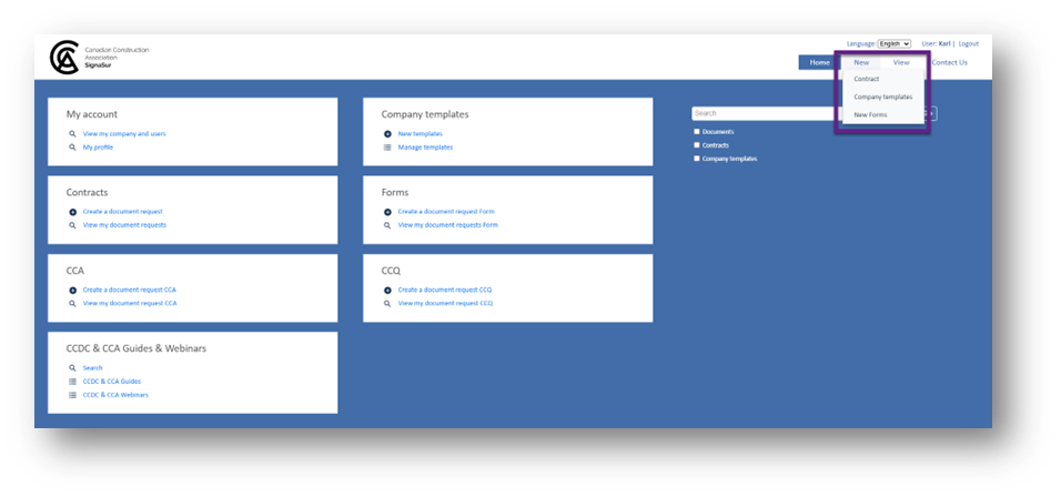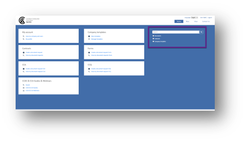 A search bar to help find documents, contracts, and guides.