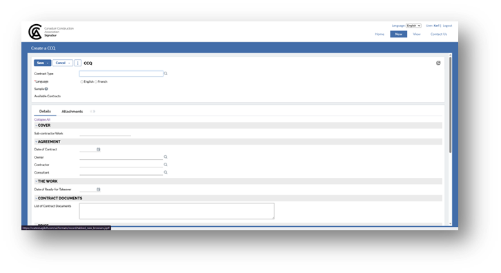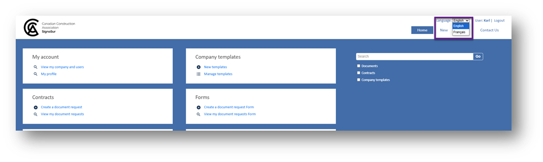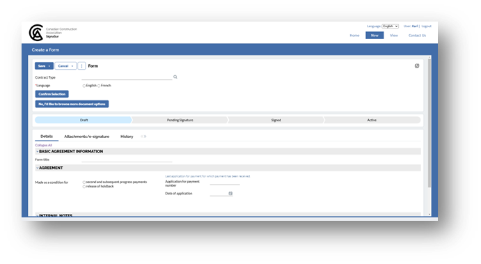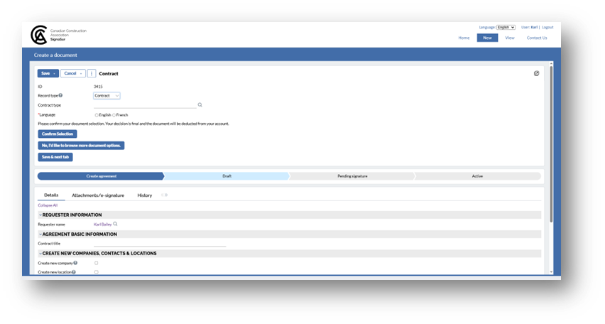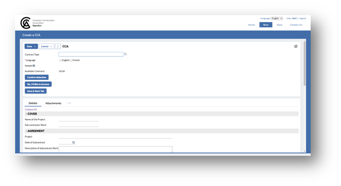 *Note: To create an English contract, please use the English system layout. For a French contract, use the French system layout.