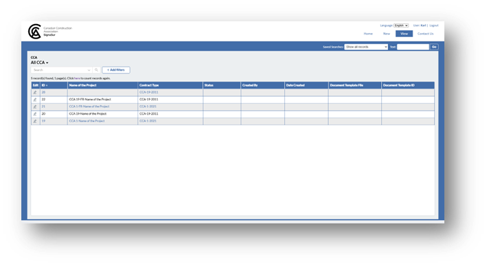 - View my document request CCA: Lists all contracts and their details