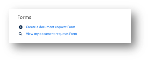 - View my document request form: Lists all forms and their details