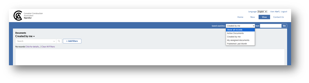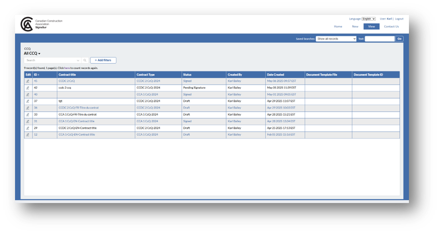 - View my document request CCQ: Lists all contracts and their details