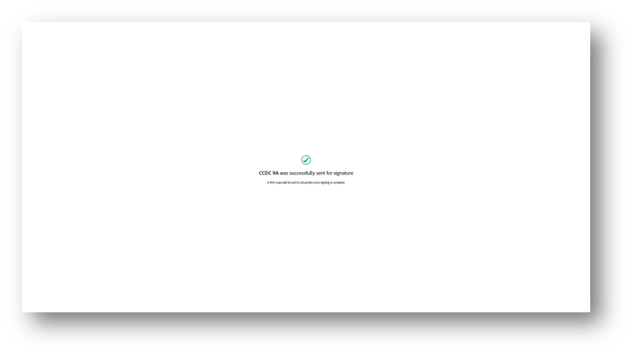 20. The contract will be sent to the required signee(s). The system will show you the document has been successfully sent.