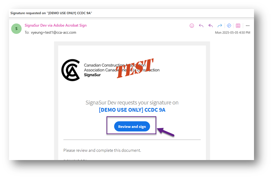 21. Each signee will receive an email. Then, click “Review and sign.”